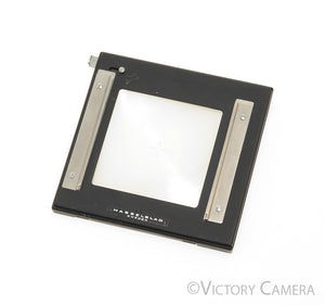 This used mainly with the SWC cameras but will fit any V series Hasselblad. The clips on the back can hold a finder for magnification to help you find critical focus.