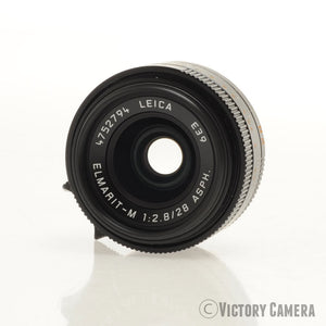 This is the current generation 28mm Elmarit with six bit coding. It has superior image quality and is one of the smallest M lenses that you can get. This version has the screw in metal hood.