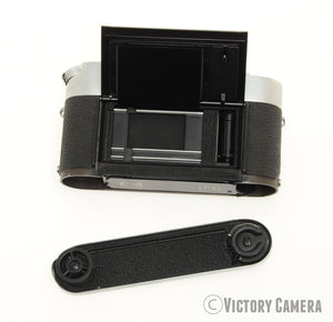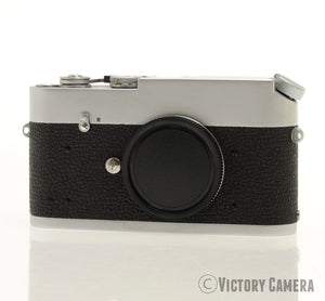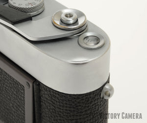 This camera is in excellent- condition with light wear. It just came back from a CLA at YYE camera. The shutter is strong and accurate at all speeds. The rangefinder is bright and accurate. The shutter curtains are clean. Everything works perfectly. There is a small dent in the upper corner and some minor cosmetic wear to the shutter speed dial, but they do not affect the function of the camera.