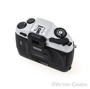 This one comes with the R8 motor winder. The winding function is handy and the added height makes the camera sit better in the hand.