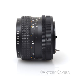 It is in excellent condition with light wear and works perfectly. The glass is clean and scratch-free with no haze, fungus, nor other issues. The focus is smooth and the aperture is dry and snappy.