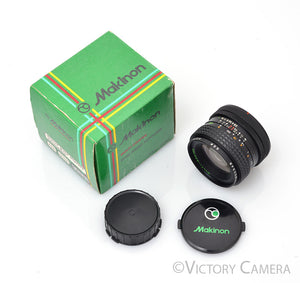 Here is a nice multi-coated wide angle prime lens from Makinon in the Pentax M42 mount. It would be an excellent addition to a classic M42 kit or adapted to mirrorless.