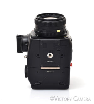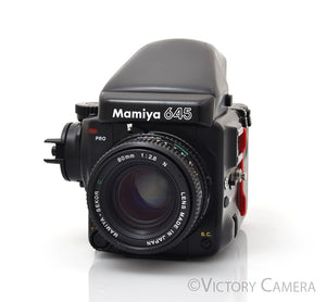 This is a great camera. It is the late model 645 Pro. It is a great camera that handles like a 35mm camera but has a negative nearly three times the size and fully modular construction.