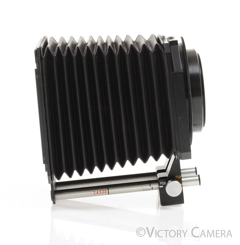 It is in excellent condition with light wear and works perfectly. The bellows are sharply pleated and light-tight. The mechanical functions are smooth.