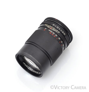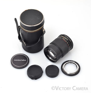 Here is a cool vintage Mamiya/Sekor lens with an excellent portrait length and great build quality. There is a built in lens hood to prevent unwanted flares in your shots. It's amazing how big modern lenses have gotten, there aren't many fast 135mm's being made today that could fit in your pocket. This one also has an adapter to fit Canon FD mount in addition to M42.