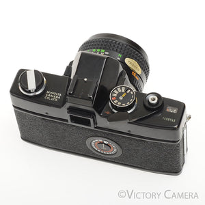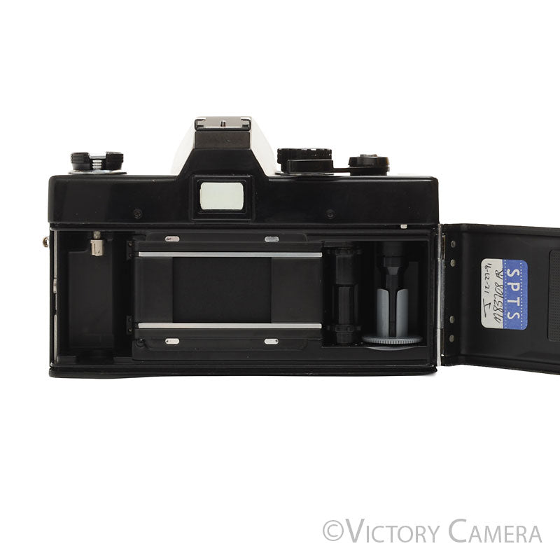 The camera is in excellent condition and works perfectly. The shutter and meter are accurate. The battery compartment is clean. The glass is clean and scratch-free with no haze, fungus, nor other issues. The focus is smooth and the aperture is dry and snappy. Our technician has replaced the light seals, a $75 value.