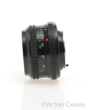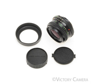 This is a nice wide angle lens for Minolta manual focus cameras. It would be excellent for landscapes, street photography, or environmental portraiture.