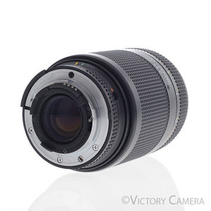 It is in excellent condition with light wear and works perfectly. The glass is clean and scratch-free with no haze, fungus, nor other issues. The autofocus is accurate and the mechanical functions are smooth. The aperture is dry and snappy.