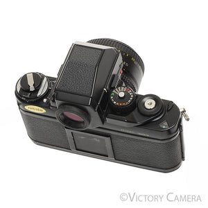 The camera is in excellent+ condition with light wear and works perfectly. The shutter and meter are accurate and the mechanical movements are smooth. The light seals have been replaced, a $75 value. The lens is clean and scratch-free with no haze, fungus, nor other issues. The focus is smooth and the aperture is dry and snappy.