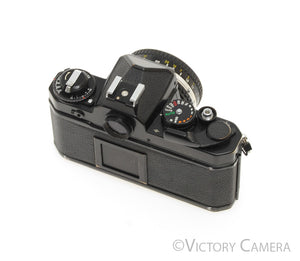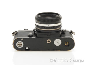 It is in excellent condition with light wear and works perfectly. The shutter and meter are accurate and the mechanical functions are smooth. Our technician has replaced the light seals, a $75 value. The lens is clean and scratch-free with no haze, fungus, nor other issues. The focus is smooth and the aperture is dry and snappy.