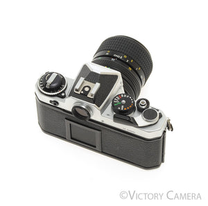 It is in excellent+ condition with light wear and works perfectly. The shutter is strong and accurate. The meter is accurate. The lens glass is clean and scratch-free with an aperture that is dry and snappy. The focus is smooth. Our technician has replaced the light seals, a $75 value.