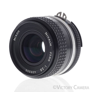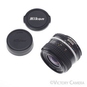 This is the standard wide angle Nikkor. It fits all SLR cameras that use manual focus Nikkor lenses. This lens is in excellent condition with light wear.