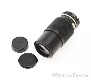 It is in excellent condition with light wear and works perfectly. The glass is clean and scratch-free with no haze, fungus, nor other issues. The focus and zoom are smooth and the aperture is dry and snappy.
