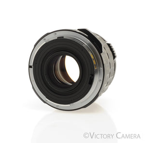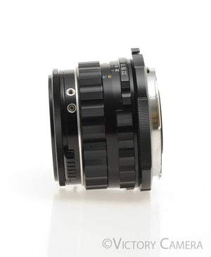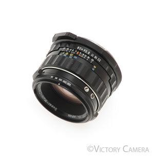 It is in mint- condition with very light wear. The glass is clean and scratch-free with no haze nor fungus. The focus has that beautiful Pentax smoothness. The aperture is dry and snappy.