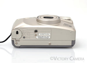 This is a nice point and shoot film camera made by Pentax with a 38-130mm zoom lens and a useful panoramic mode. It is about the size of my cell phone, it would be an excellent camera to carry with you for day-to-day photography or for travel.