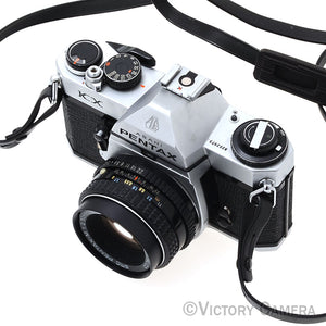 It is in excellent condition with light wear and works perfectly. The shutter and meter work perfectly. We have replaced the light seals (a $75 value). The mechanical functions are smooth. The lens is clean and scratch-free with no haze, fungus, nor other issues. The focus has that Pentax smoothness and the aperture is dry and snappy.