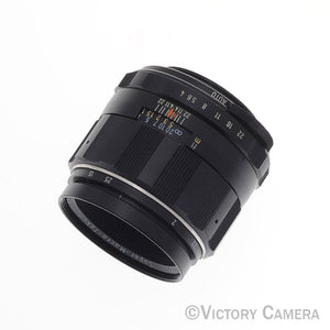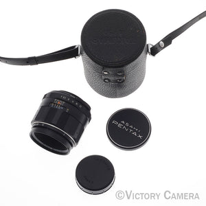 It is in excellent condition with light wear and works perfectly. The glass is clean and scratch-free with no haze, fungus, nor other issues. The focus has that Pentax smoothness. The aperture is clean.