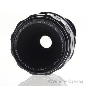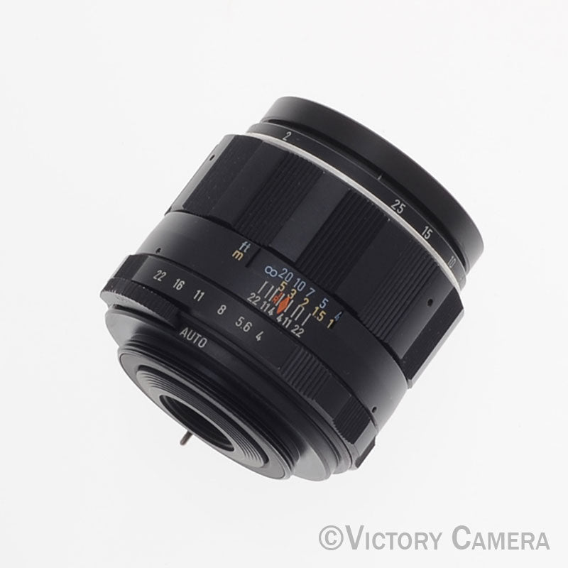 This is a sharp macro lens from Pentax for M42 mount cameras. It has a preset aperture ring, meaning you select the shooting aperture with one and stop down after composing with the other. This aperture system typically gives smoother rounder bokeh.