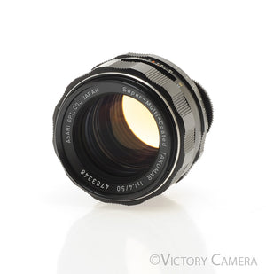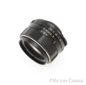 This is the fast standard manual focus lens for Pentax M42 mount cameras. The thorium lenses have a tendency to have a yellow tint to the glass, this one has clear glass with hardly any of the yellow tint.