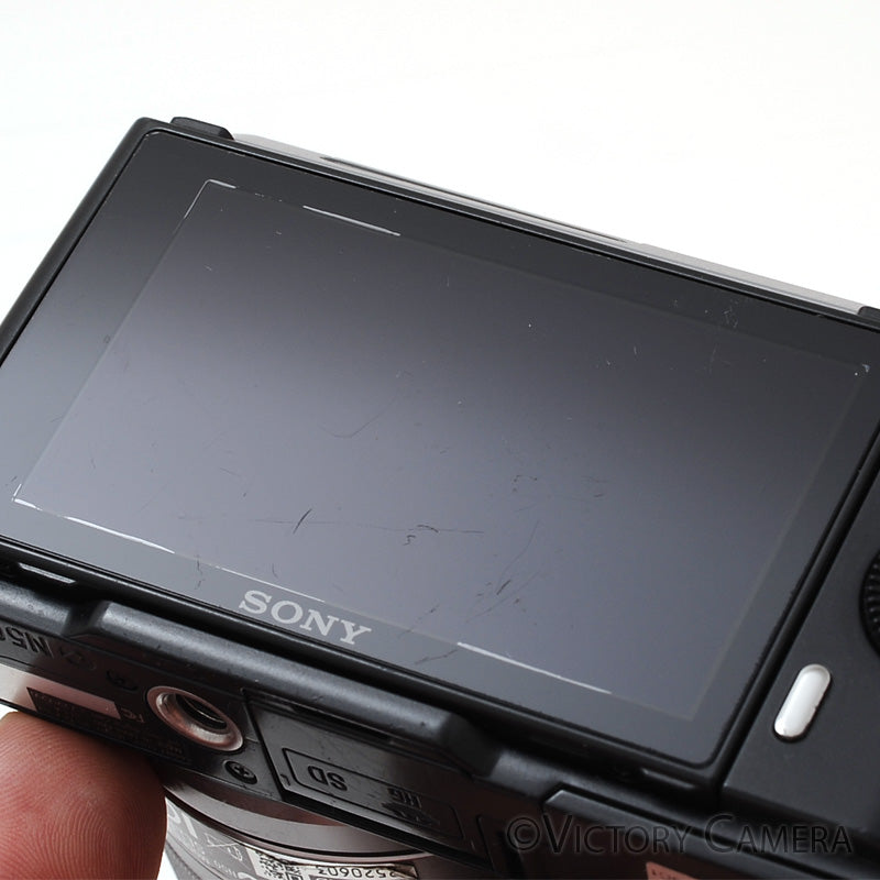 It is in good condition with moderate wear and works perfectly. The shutter and meter are accurate and the sensor is clean. There are scratches on the LCD screen. The lens is clean and scratch-free with no haze, fungus, nor other issues. The autofocus is accurate and the mechanical functions are smooth.