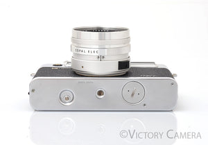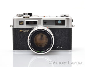 Here's a nice rangefinder made by Yashica with a Color-Yashinon DX 45mm f1.7 prime lens. It uses an obsolete battery but it is possible to use an LR44 and a spacer. The spacer and battery are included.